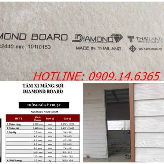 Đặc tính kỹ thuật của sản phẩm DiamondBoard Thái Lan (Tấm xi măng sợi Diamond Board 1220 x 2440 x 18mm) .