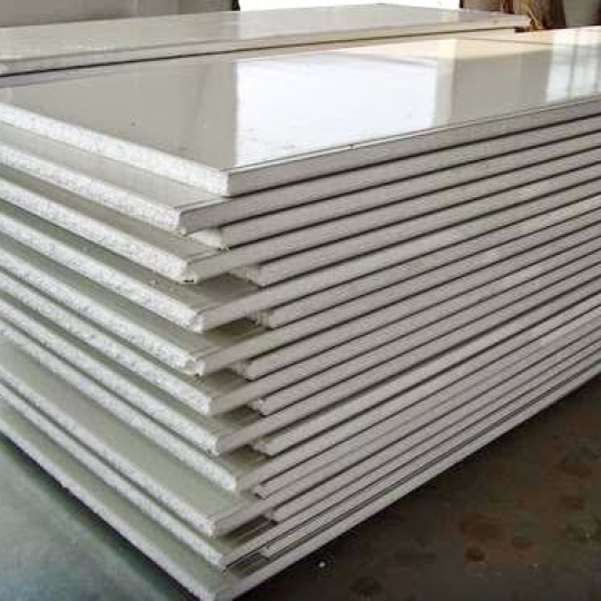 EPS được cấu tạo bởi thành phần lõi xốp kết dính Expand Polystyrene, có tỷ trọng 11 – 40 kg/m3 có tính cách âm, cách nhiệt và ở giữa được cố định bằng keo dán chuyên dụng. Vật liệu này không có khả năng chống cháy nên có giá thành phải chăng nhất trong 3 loại panel. Về các số đo, thông thường EPS có 3 kích thước chính là 50, 75 và 100 mm; chiều ngang mỗi tấm là 1070 mm và kích thước thực có thể sử dụng là 1 mét.